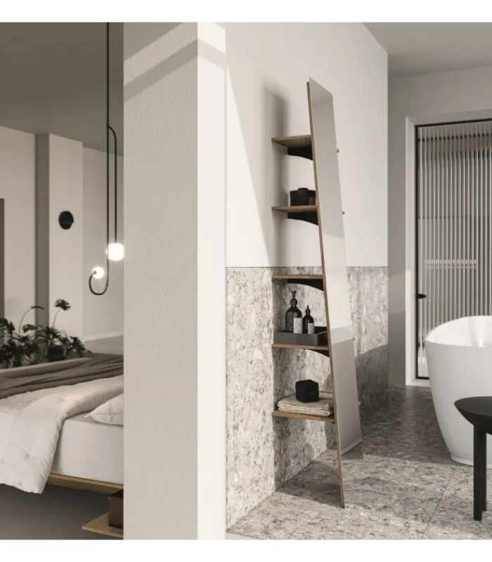 Con personalità integra più funzioni in un’estetica sobria, alcuni esempi: a servizio del letto come comodino laddove gli spazi sono contenuti o in ambienti adiacenti al lavabo o alla vasca diventando un porta salviette o porta prodotti da bagno con specchio a figura intera.