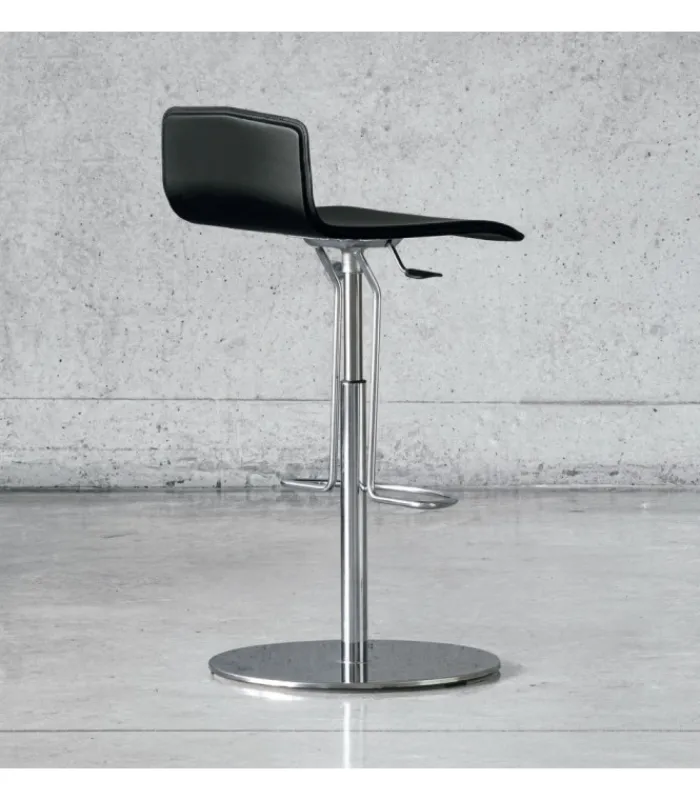 Questo sgabello è progettato per essere girevole e regolabile in altezza, permettendo un utilizzo versatile e adattabile a diverse esigenze. Il poggiapiedi integrato aggiunge ulteriore comodità, rendendolo ideale per lunghe sedute in cucina, bar o spazi di intrattenimento.