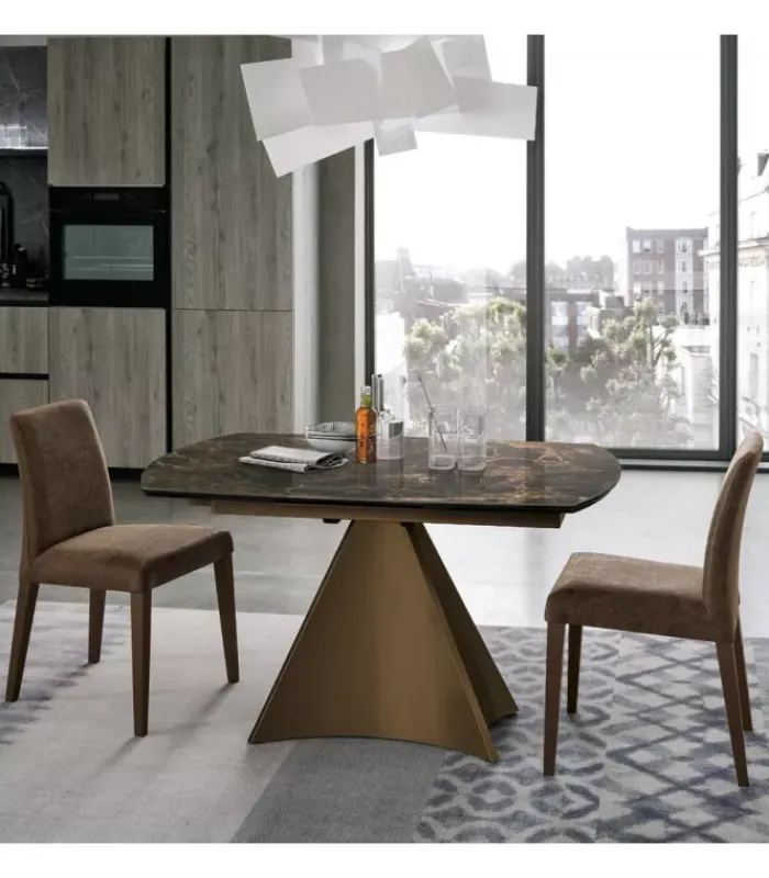 - Piano e Allunghe: Realizzati in gres porcellanato, assicurano una superficie resistente, facile da pulire e dall’aspetto raffinato, ideale per l’uso quotidiano e per occasioni speciali.