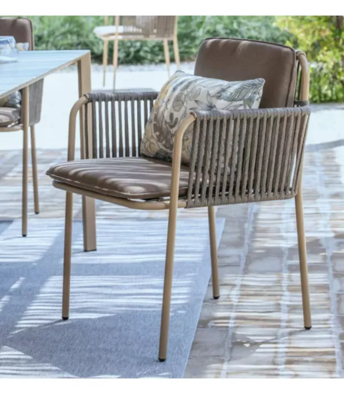 - L’intreccio delle corde crea un effetto visivo raffinato, donando alla poltrona un aspetto leggero ma allo stesso tempo sofisticato.