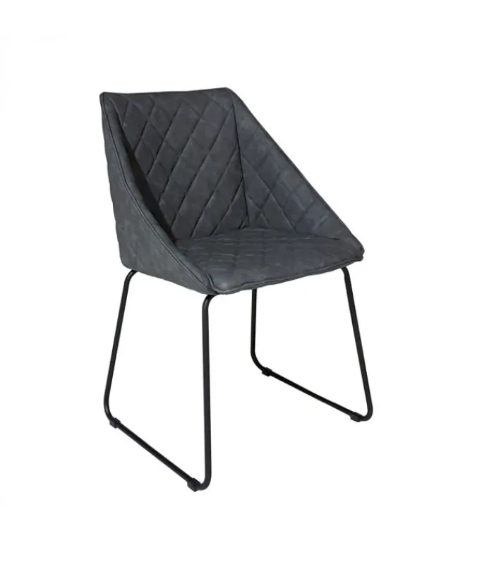 Roman, sedia imbottita in ecopelle grigia a rombi con struttura in metallo.