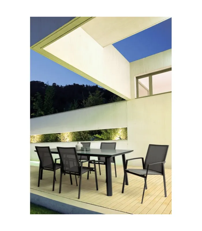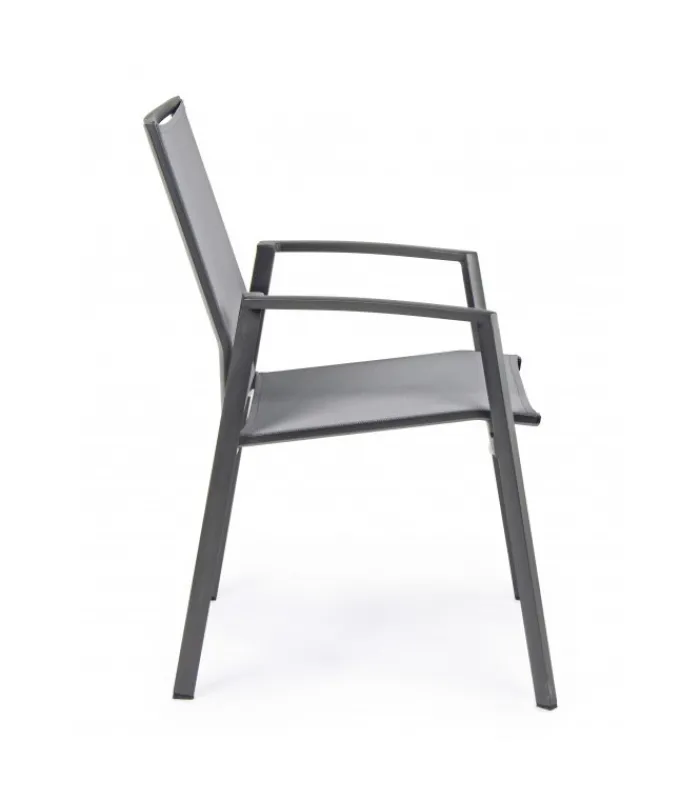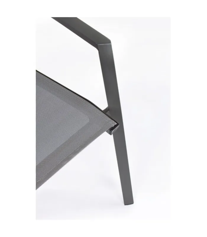 STRUTTURA IN ALLUMINIO, VERNICIATO A POLVERE (POLIESTERE). SEDUTA E SCHIENALE RIVESTITI IN TEXTILENE PHIFER 1X1. IMPILABILE.