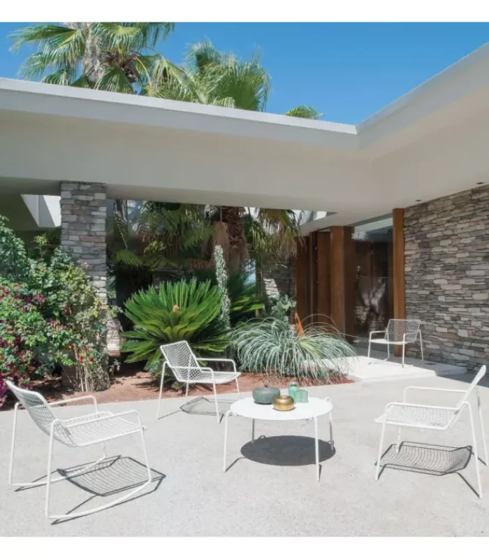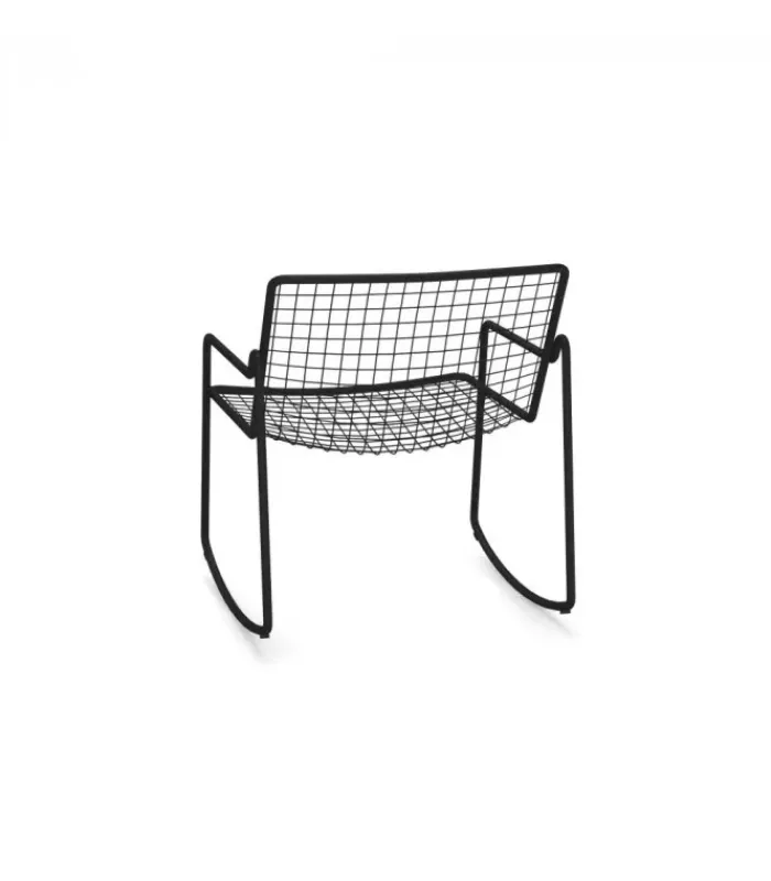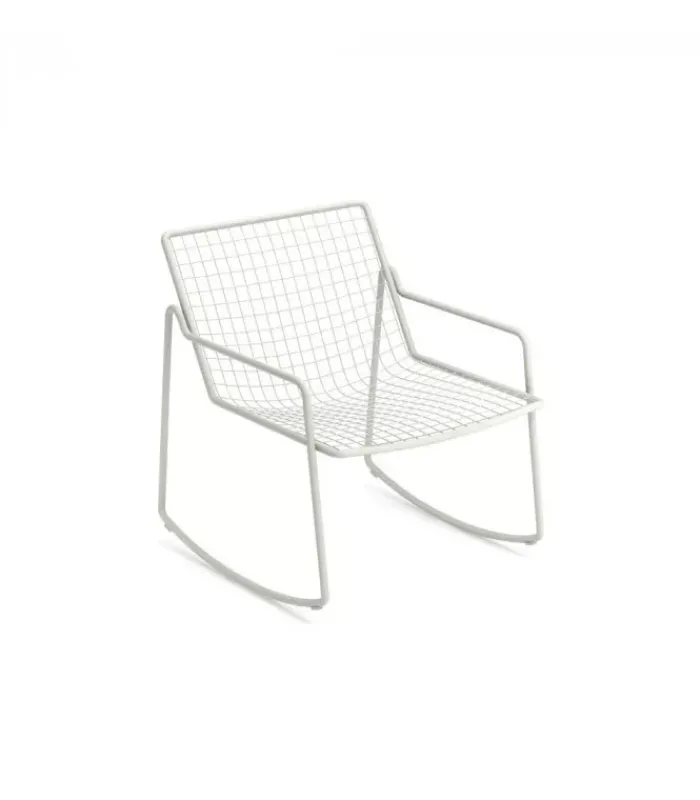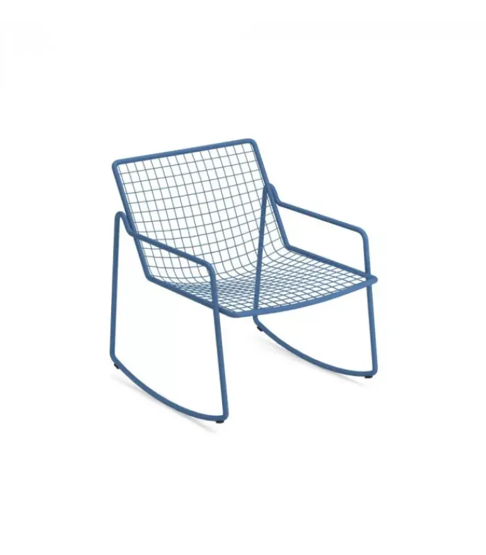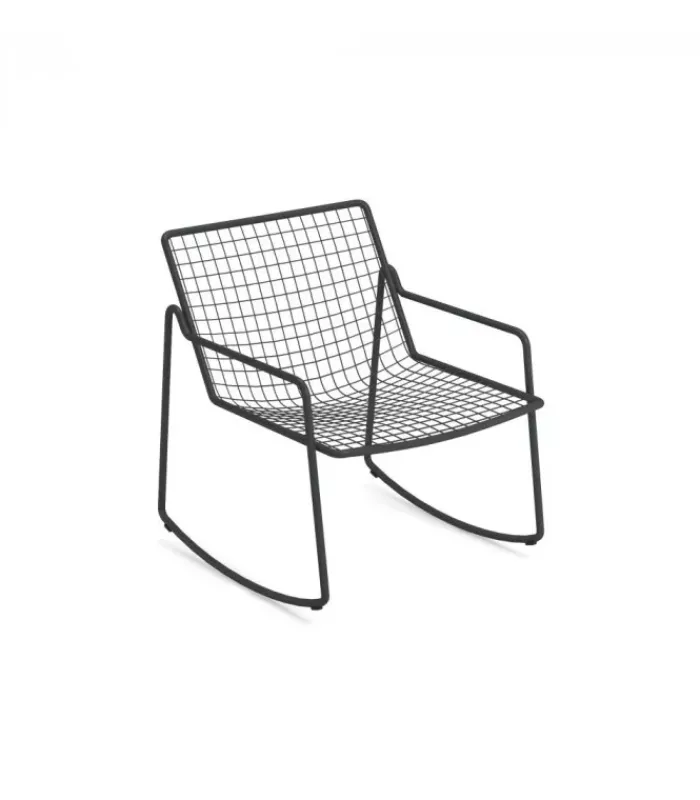 RIO R50 è una collezione completa di sedute composta da sedia e poltroncina dining, poltrona lounge disponibile anche nella versione dondolo, sgabello e tavolo basso. RIO R50 ha una struttura in tubo di acciaio di tipologia ASFORM, acciaio di alta qualità con elevate capacità meccaniche e alta resistenza al carico del peso. La lavorazione dà al tubo un segno fortemente connotato, una lettera R, che si individua nella zona di giunzione tra seduta e schienale. Tutte le saldature di tipo strutturale sono eseguite con tecnologia Mig che conferisce una maggiore resistenza agli sforzi e riduce il rischio ruggine mentre la rete di tondini di acciaio è, per avere una maggior precisione, elettrosaldata alla struttura. Come tutti i prodotti EMU in acciaio, è previsto un pretrattamento di cataforesi e successivamente un trattamento di verniciatura con polvere termoindurente, che conferisce al prodotto uno strato di vernice con spessore omogeneo con un alto grado di aderenza e resistenza. La presenza dei sottopiedi in nylon supporta la facilità di spostamento e di protezione delle estremità del prodotto.