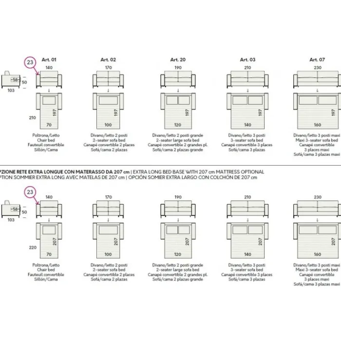 - Disponibile anche con materasso EXTRALOUNGE L.207 cm. (opzionale)