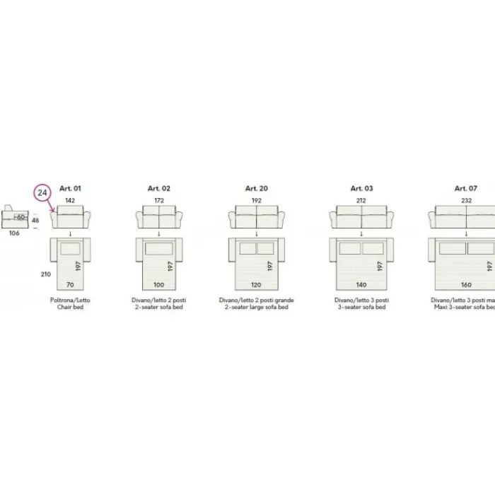 - 5 diverse larghezze di divano
