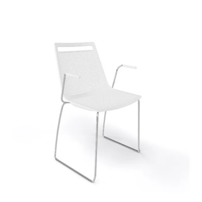 La particolare foratura dello schienale , realizzata con 1034 fori ellittici, consente una corretta traspirazione e un benessere generale dell’utente, anche per un uso prolungato. La maniglia integrata nel disegno della scocca è ottimale per una semplice trasportabilità.