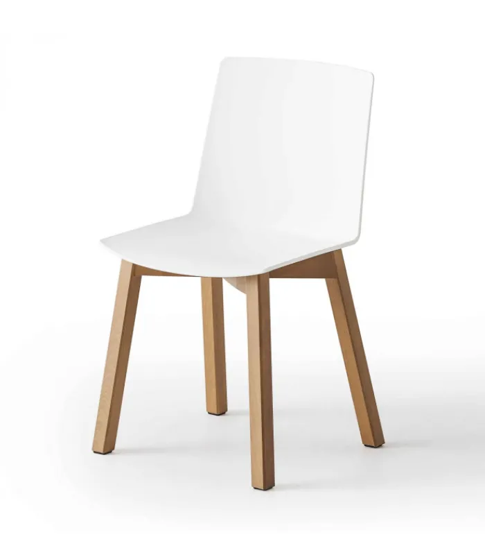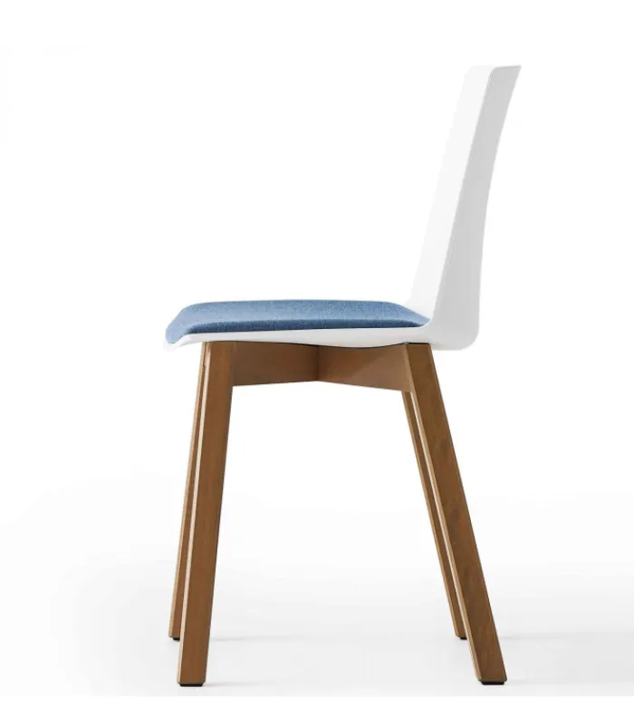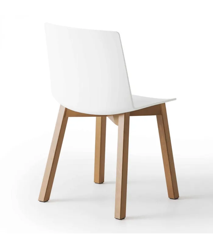 Sedia JUBEL BL disponibile con o senza cuscino. La struttura a 4 gambe è in legno di faggio (disponibile in 4 colori), la scocca è in tecnopolimero (disponibile in 6 colori).