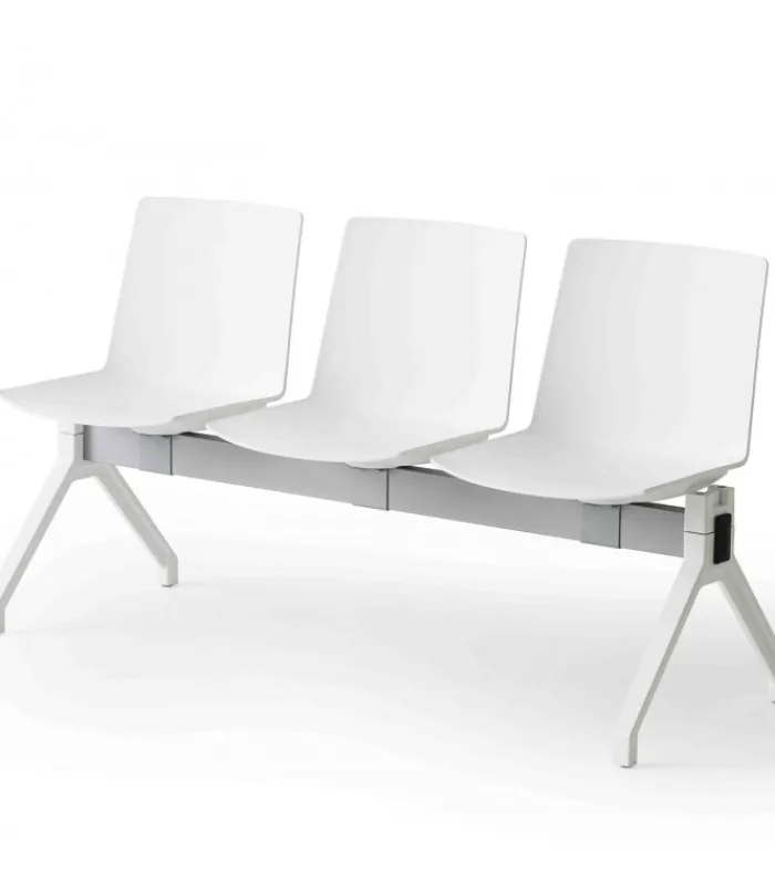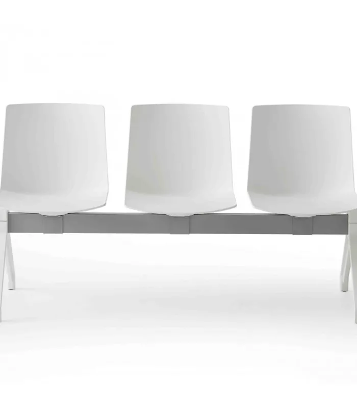 Panca JUBEL PG a 2, 3, 4 o 5 posti. Le gambe sono realizzate in co-iniezione di metallo-polimero (disponibili in 8 colori), le scocche sono in tecnopolimero (disponibili in 6 colori).