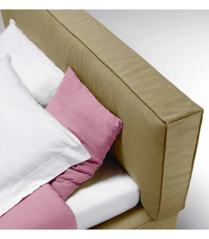 Letto DUCK con giroletto e testiera imbottiti e rivestiti (sono disponibili molti tessuti e colori differenti), il tessuto di rivestimento è sfoderabile. È disponibile con o senza contenitore, in caso di letto con contenitore sono disponibili due diversi metodi di alzata della rete (totale o dai piedi del letto). I piedini sono acquistabili o in polipropilene nero o in legno (naturale, bianco o wengè) nella versione square (che è un’esclusiva del letto DUCK).