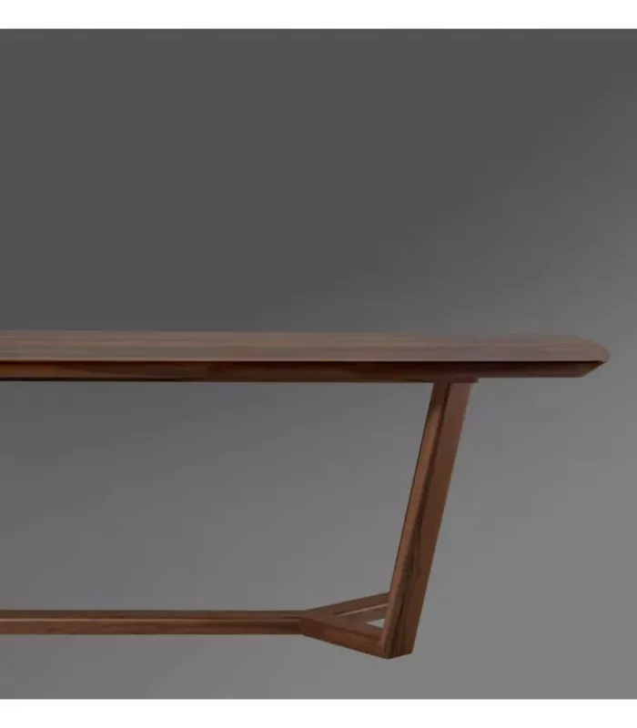 Il piano del tavolo è realizzato con un impiallacciato di alta qualità, conferendo un aspetto raffinato e sofisticato. La sua forma sagomata e bisellata aggiunge un tocco di eleganza e personalità al tavolo, facendolo risaltare come pezzo d’arredamento distintivo nella tua casa.