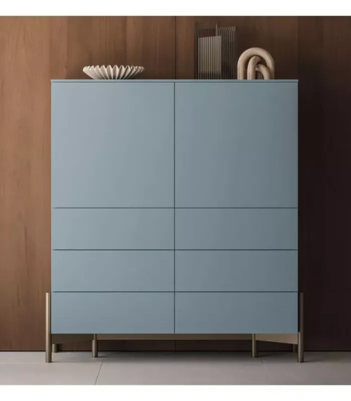 Sistema ampio e versatile, Homy Giorno permette di creare le soluzioni più adatte agli spazi a disposizione, da quelle più estese e complesse, a quelle più essenziali e contenute come le madie. A servizio di una zona pranzo, ad esempio, le madie a terra sono un complemento d’arredo di grande capacità contenitiva unendo la funzionalità dei cassetti alla praticità delle ante. Soluzione pratica e funzionale, diventano un elemento protagonista dell’ambiente, soprattutto se rese uniche da un tocco di colore scegliendo una finitura laccata.
