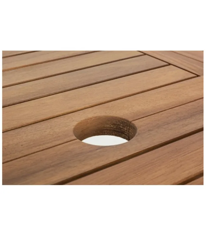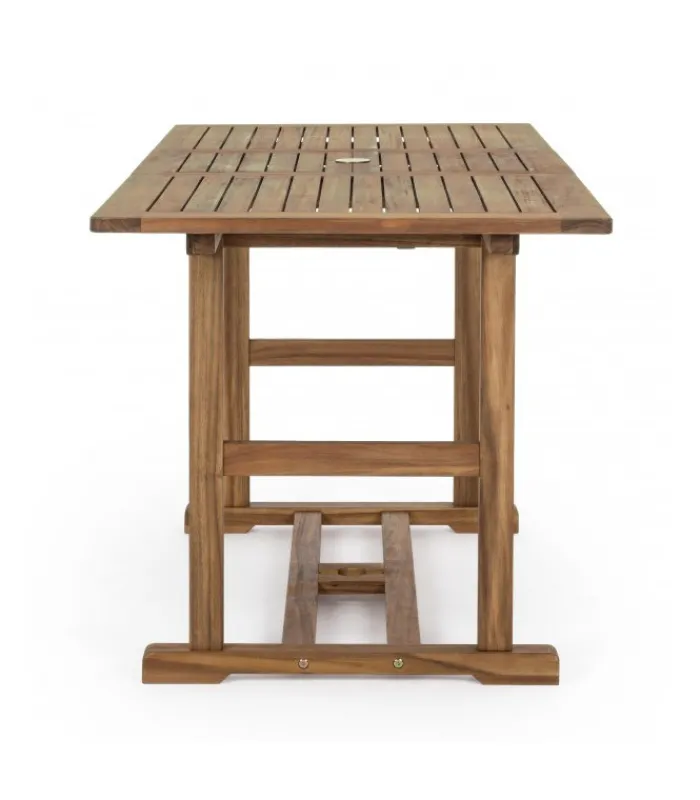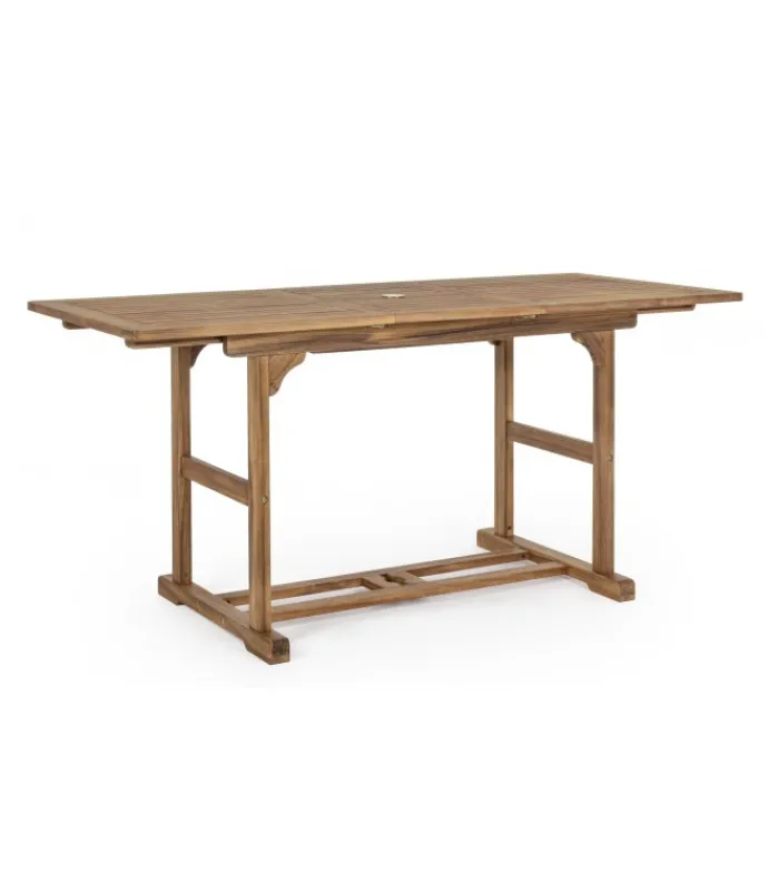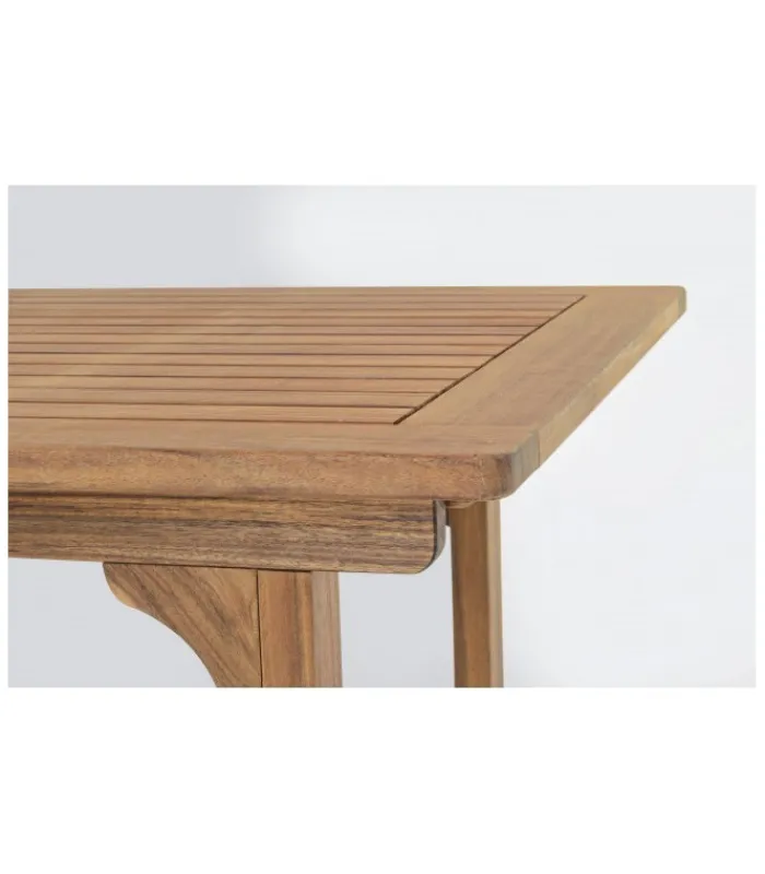 STRUTTURA IN LEGNO DI ACACIA CON FINITURA AD OLIO. FERRMENTA IN ACCIAIO GALVANIZZATO. ALLUNGABILE. BARRE DI SCORRIMENTO IN PLASTICA. PRODOTTO DA ASSEMBLARE