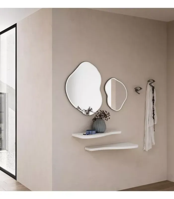 Specchi sagomati e bisellati supportati da pannello in melamminico.