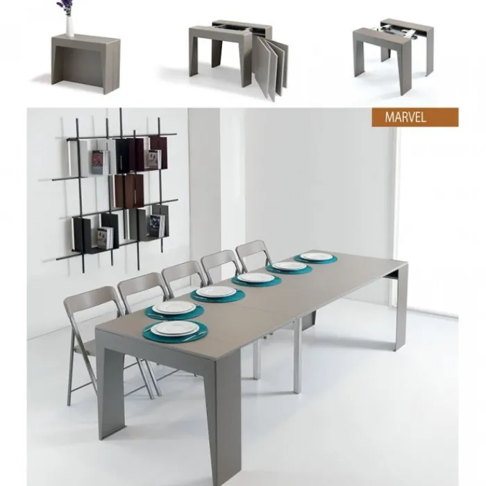 La consolle Marvel è ideale per ottimizzare lo spazio in casa: può essere utilizzata come tavolo da pranzo estendibile per ospitare comodamente più persone, oppure come consolle compatta per arricchire l’arredamento di qualsiasi ambiente. Grazie alla sua versatilità e al design moderno, si integra perfettamente in soggiorni, sale da pranzo, studi o ingressi.