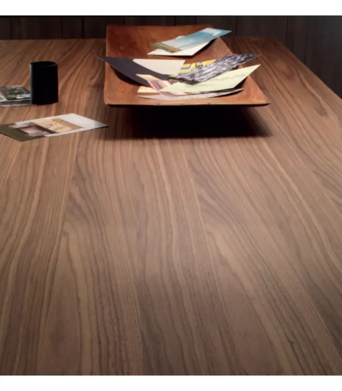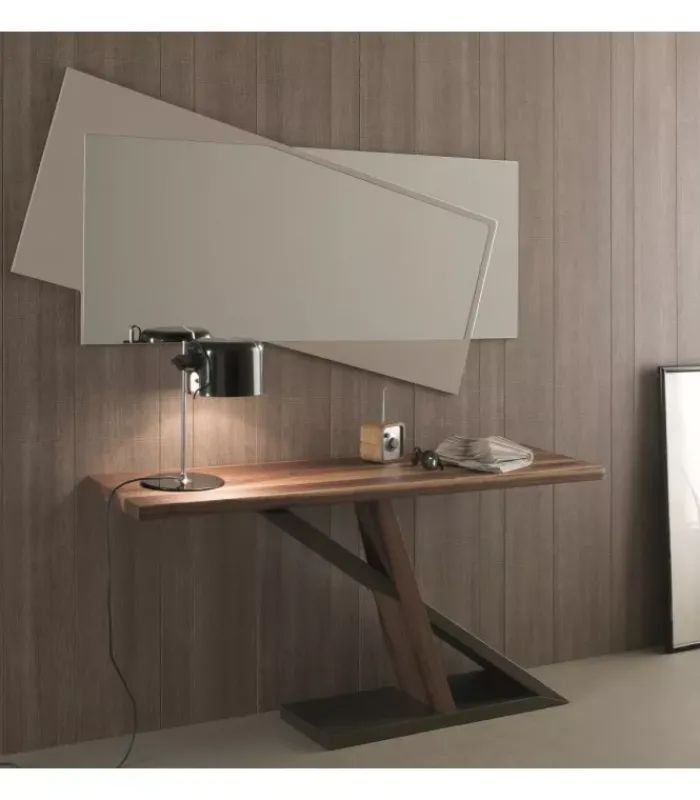 Consolle in mdf laccato. Piano ed inserto centrale in legno. Il tratto caratteristico della console Zed è la base slanciata, dalla quale emerge un profilo in noce che si lega al top con estrema naturalezza. Le linee pulite conferiscono un’immagine di forte stabilità, grazie anche all’inserto laccato bronzo. La console diventa così un mobile di pregio estremamente versatile.