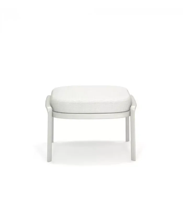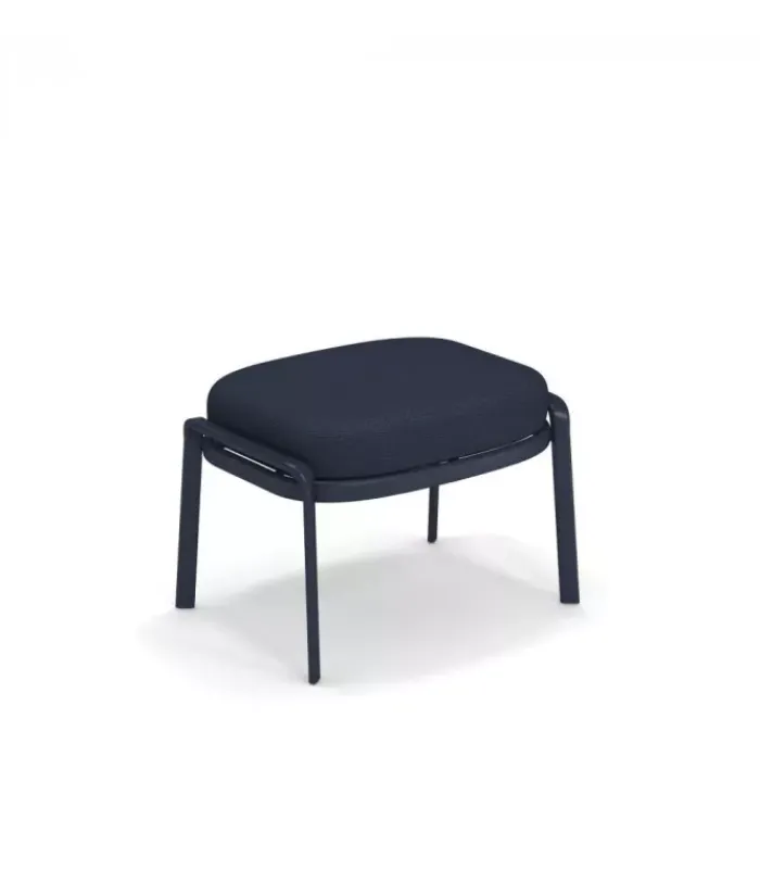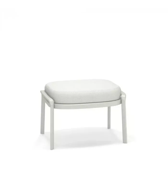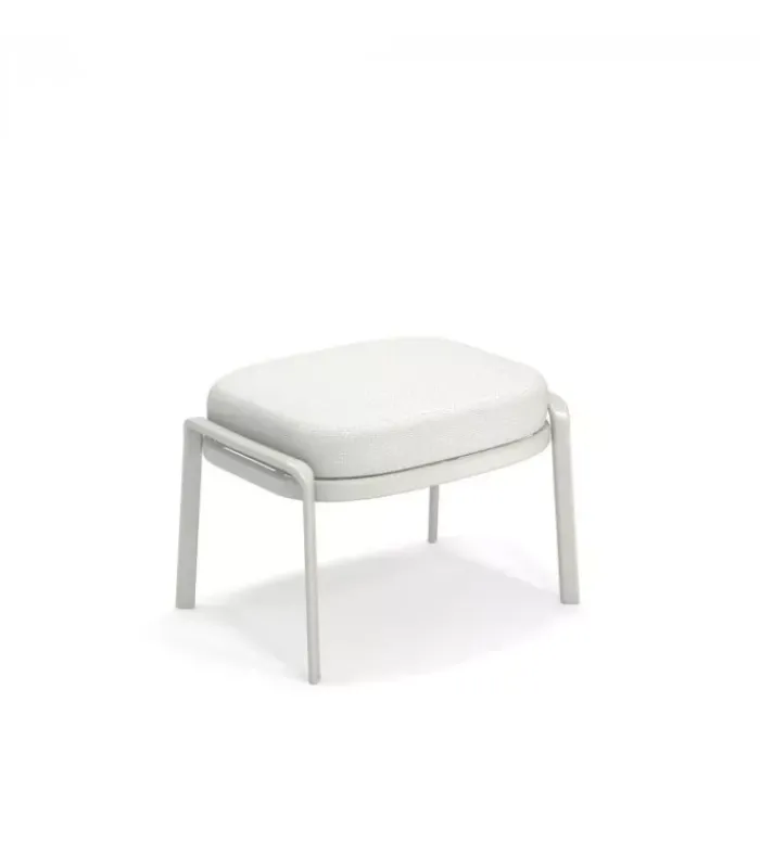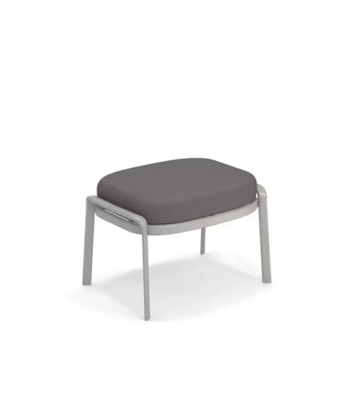 È realizzato con la struttura in alluminio verniciato, la seduta è imbottita, il cuscino è disponibile in molte finiture e fantasie differenti.