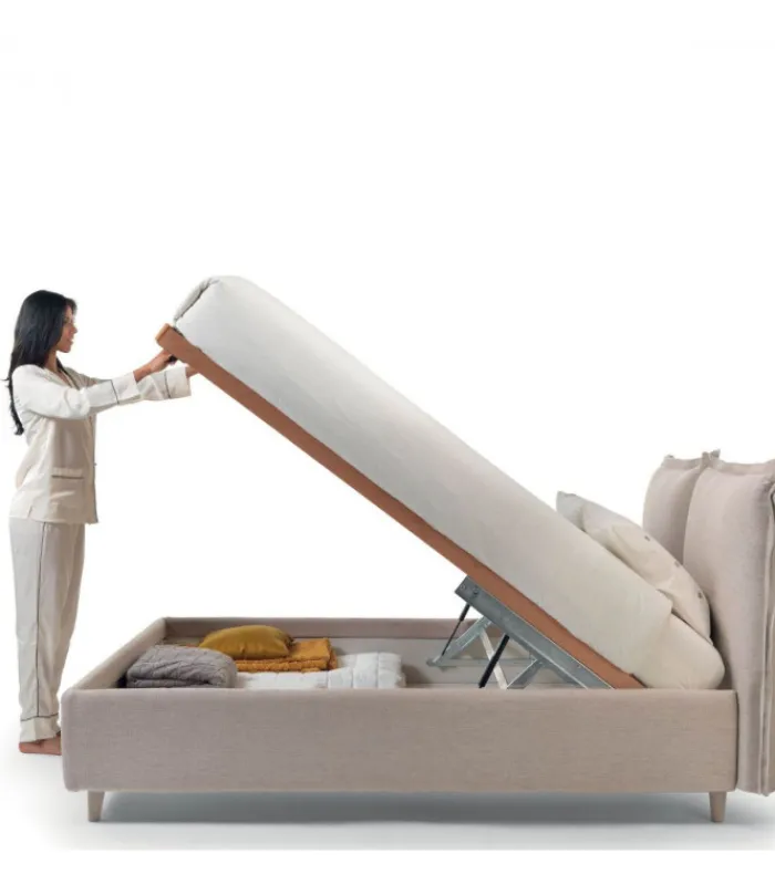 LETTO IMBOTTITO JUSTINE CON CONTENITORE appartiene ad una linea di letti sartoriali, completamente personalizzabili ed adattabili a diverse tematiche di gusto, vengono forniti infatti tantissimi tessuti, pelli ed ecopelli, una serie di coordinati e diverse tipologie di reti con e senza meccanismo ma rigorosamente in legno multistrati di faggio evaporato made in Italy.