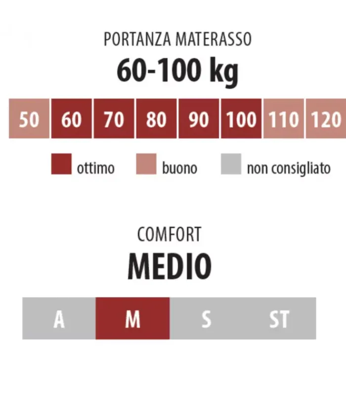 Ogni molla, reagendo alle sollecitazioni, risponde in modo indipendente alle pressioni del corpo assicurando un sostegno ergonomico e proporzionato al peso.