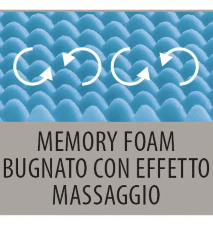 Memory Foam a bassa portanza per rendere la superficie di contatto accogliente ma allo stesso tempo reattiva ai movimenti del corpo durante la notte, sostenendolo senza compressioni e aumentando la microcircolazione sanguigna e il benessere