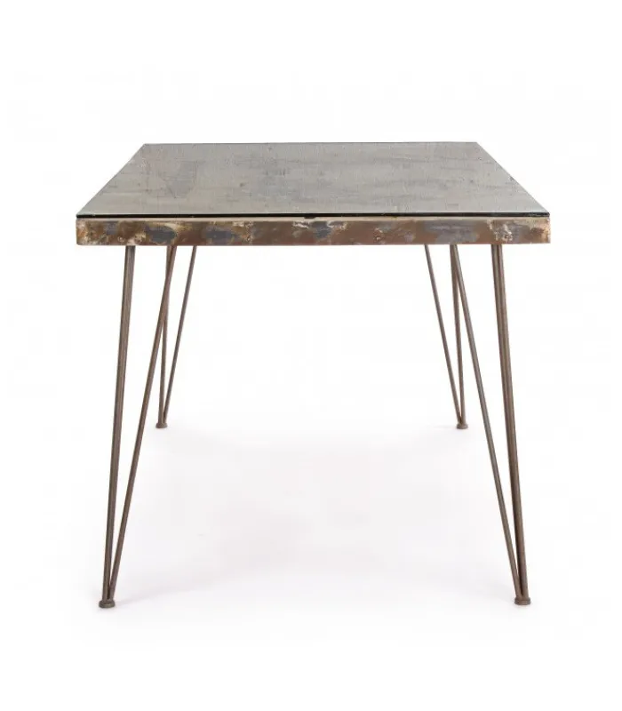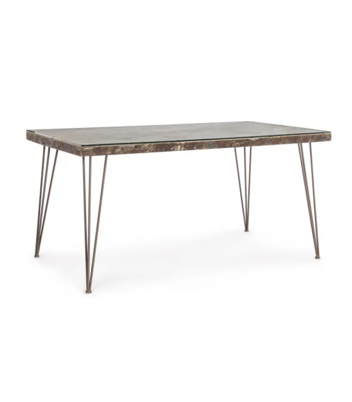Struttura in acciaio anticato, piano in vetro e mdf con decorazione in cemento- gambe da assemblare.