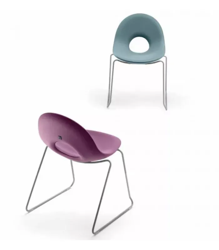 Sedia con slitta in ferro cataforizzato (outdoor). La mono scocca in polietilene e la struttura in metallo conferiscono alla sedia grande leggerezza e resistenza. È venduta in stock da 2 pezzi ed è disponibile in 8 colori differenti.
