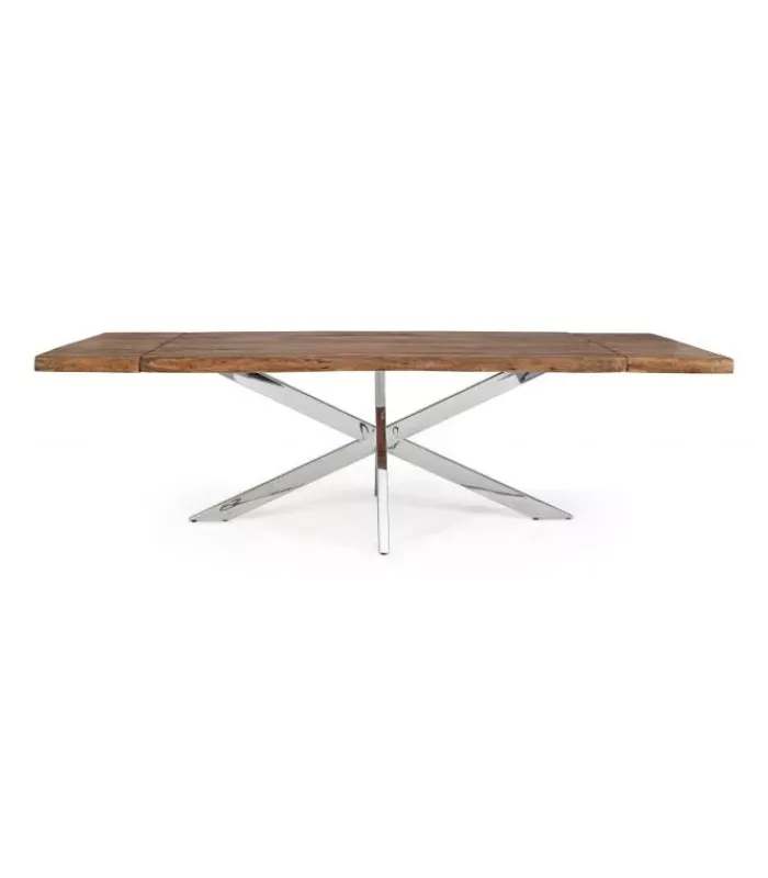 GAMBE IN ACCIAIO INOSSIDABILE, PIANO IN LEGNO D’ACACIA (SEZIONI ORIGINALI DI TRONCO). FINITURA ACRILICA PROTETTIVA. 2 PROLUNGHE ESTERNE DA 40CM. ESSENDO UN PIANO LAVORATO A MANO, LE FORME E LE MISURE DEL LEGNO SONO SOLO INDICATIVE. TUTTI I PRODOTTI SARANNO DIVERSI L’UNO DALL’ALTRO. GAMBE DA ASSEMBLARE. – DIMENSIONI IN CM. 180/260 (L.) 90 (P.) 77 H