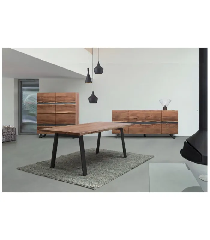 Struttura in legno di acacia, gambe in acciaio verniciato a polvere epossidica- porte con inserti in metallo- finitura a base di vernice poliuretanica- vano porta comprensivo di mensola- gambe da assemblare.