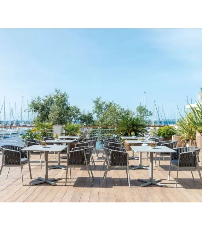 È realizzata con la struttura in alluminio verniciato, la scocca è realizzata in poliestere e corda sintetica. È disponibile in 4 abbinamenti di colori, come nelle foto.