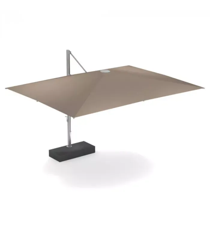 Il palo è disponibile in alluminio anodizzato o in alluminio verniciato (nero o bianco opaco). Il telo è in poliestere (nero o tortora). Il basamento è a mattonella (nero o bianco opaco).