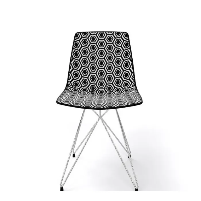 Struttura a traliccio in filo metallico cromata, verniciata bianca o nera.