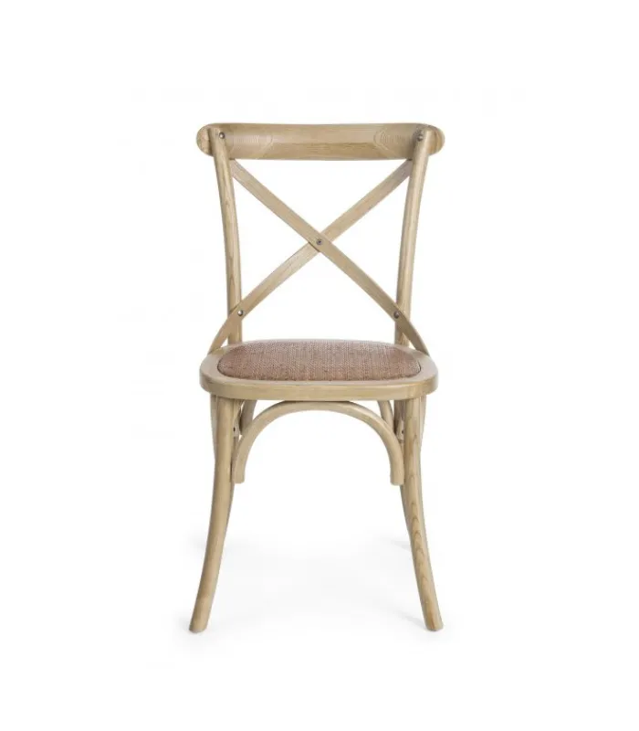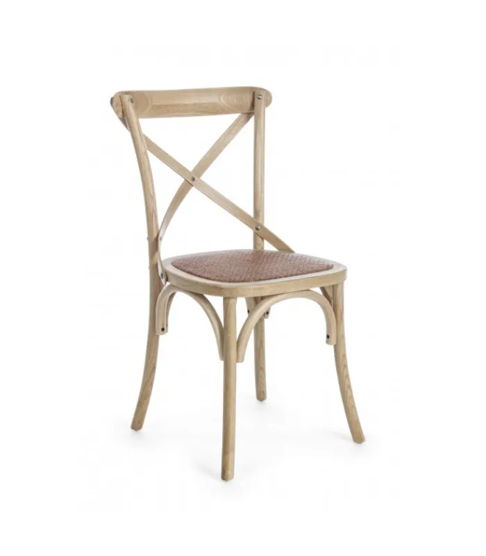 STRUTTURA IN LEGNO DI OLMO, SEDUTA IMBOTTITA RIVESTITA IN RATTAN NATURALE, FINITURA POLIURETANICA. IMBALLO SENZA CARTONE.