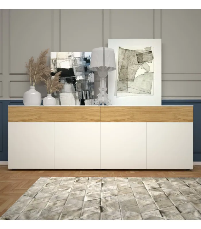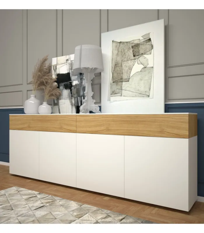 Madia dal design lineare, ideale per completare l’arredo di una cucina , di un soggiorno o di un corridoio.