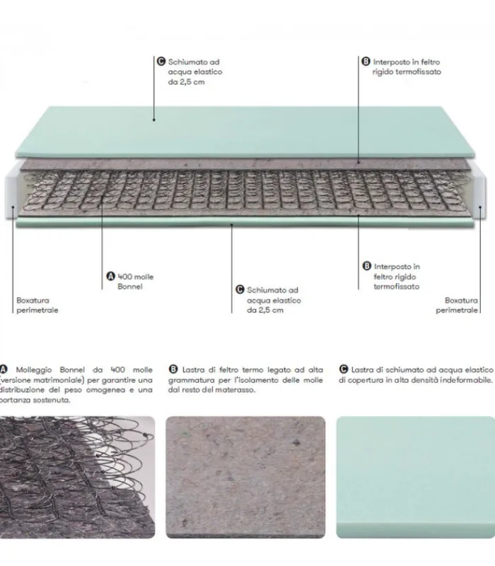 400 molle Bonnel per una distribuzione omogenea del peso e una portanza sostenuta.