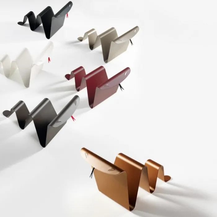 - Design in acciaio curvato: Realizzato in acciaio curvato, il portariviste Snake combina resistenza e leggerezza in un design fluido e accattivante.