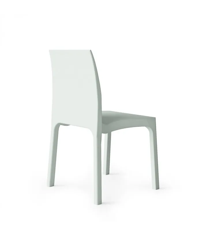Dalì è la sedia in PVC disponibile nei toni bianco e sabbia, con un dettaglio dal design particolare tra la fine dello schienale e la seduta.